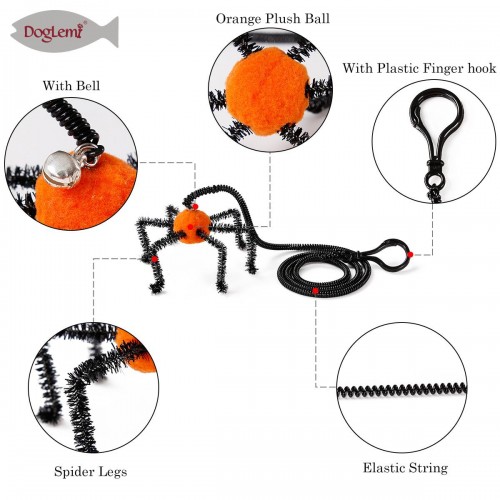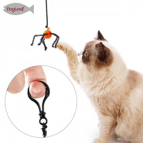 Elastic string is durable to use, and can give cats more pleasure. Interesting spider shape plush toy would attract cats easily, make them wat to play. The elastic string can be hung anywhere as you like, let your cats have fun all the time. With small bell on the toy, can make clear sound when the string is been shaking, give cats extra pleasure. Clever use of the principle of spring rope telescopic, no matter how far the cat bites, it will always bounce back to the owner, play fun!