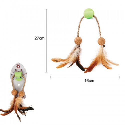 DOGLEMI CAT TEASER ROPE W/FEATHER SUCKER WINDOW 1pc/pkt