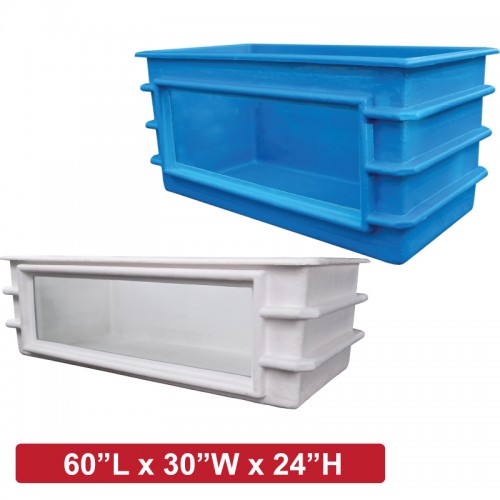FIBRE TANK w/GLASS - 60"L x 30"W x 24"H GLASS SIZE:56"L x 20"H WHITE