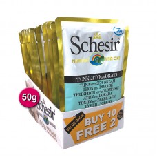 SCHESIR CAT FOOD POUCH 50g BUY 10 FOC 2 ASSORTED FLAVOUR 12pcs/set