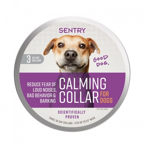 SENTRY Calming Collars use patented GOOD Behavior pheromone technology. Using a pheromone that mimics the one mother dogs produce to calm their puppies, the collars are clinically proven to reduce or eliminate stress-related behavior such as inappropriate marking, excessive barking and chewing. Collars help alleviate problem behaviors triggered by travel, thunderstorms, fireworks, being left alone and new social situations. This collar continues to release calming pheromones for your dog for 30 days. It can be used for dogs of all ages and breeds without long-term side effects.