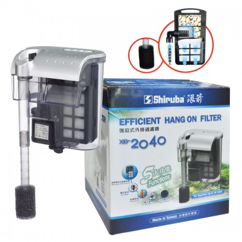 SHIRUBA XB-2040 HANG ON FILTER 4.5w,max. flow:360L/H,149mmx115mmx163mm For 20-40L tank 12pcs/outer